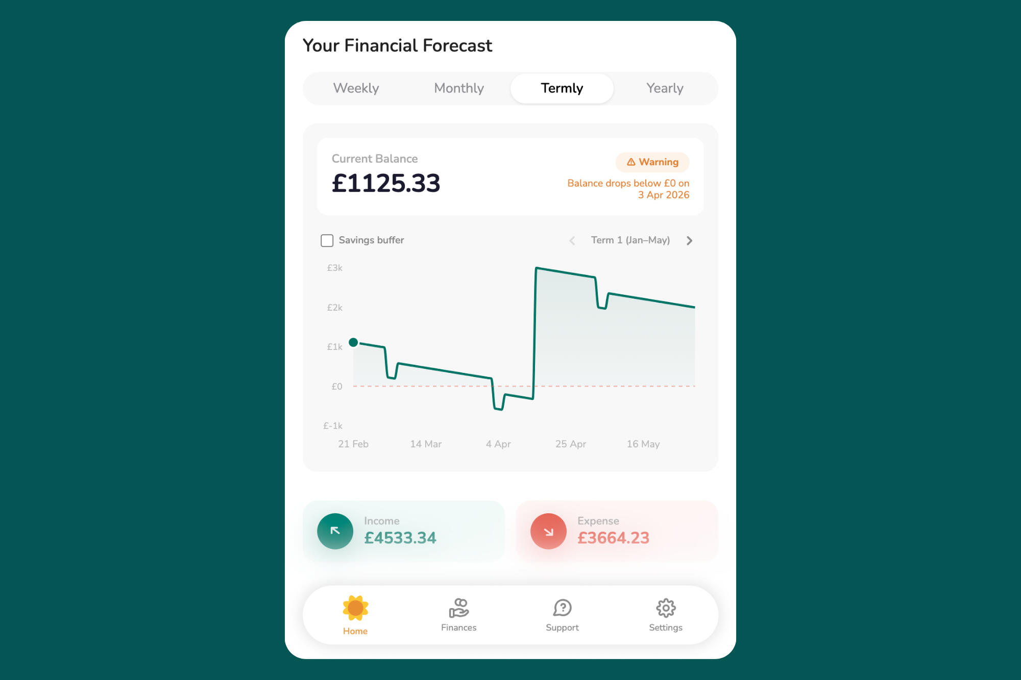We're here for one reason. To fix a broken system and bring money clarity to student life.No Monthly Cycles: From termly home Student Loans to £30k international tuition fees sitting in the bank – we speak the language of the student situation.EEI (Eventual Expected Income): We coined this phrase because often students will have the cash, just not yet! We don't just track what you spent; we factor in the money you don't have yet, but need to survive.The "£0 Date": We find your financial "cliff edge" before you fall off it. When it comes to avoiding the red (or maxing out your interest-free overdraft!), we do the maths so you don't have to.